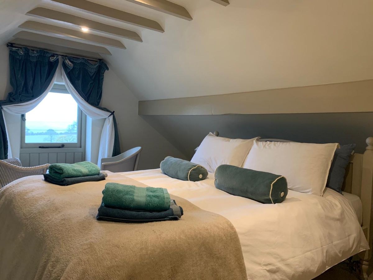 Stepping into Pail End, there is an open-plan living area, with compact kitchen and sitting area. Upstairs, you have a double eaves bedroom, with a window looking south along the valley, complete with a couple of chairs and small table for morning coffee, or tea breaks. A comfy, king-size bed with a low footboard to accommodate taller guests. Soft and firm pillows.